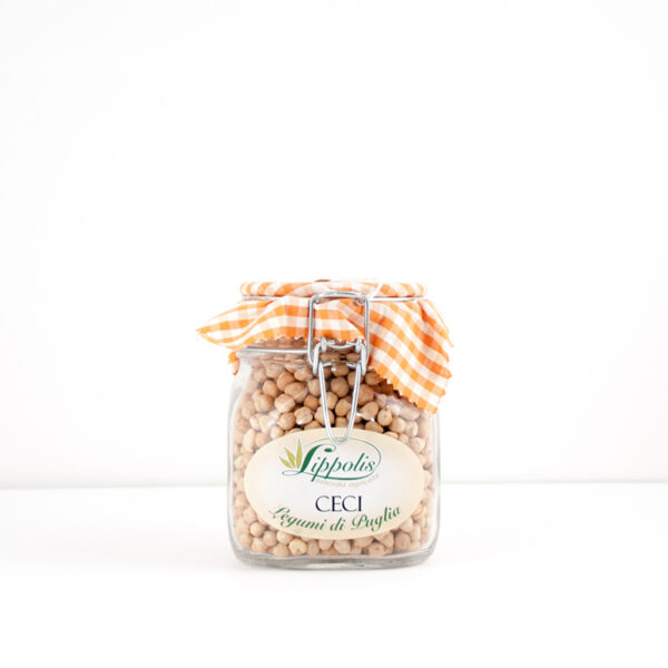 I ceci bianchi sono un alimento completo e utile per il cuore e contro il colesterolo. Le numerose fibre presenti aiutano la regolarità intestinale e lo rendono un alimento energetico, pur essendo molto calorico, è fondamentale per il benessere fisico. Per la loro cottura è consigliato lasciarli in ammollo la sera prima e cuocerli per una durata di circa 2 ore. Vi conquisteranno conditi con delle orecchiette Senatore Cappelli (nrd. Orecchiette Senatore Cappelli Lippolis) accompagnate dal nostro vino primitivo “L’Angelo”.