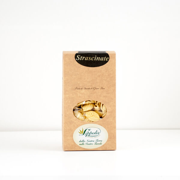 Il grano duro affonda le sue radici nel mezzogiorno d’Italia. Si diversifica dal grano tenero per la sua maturazione delle cariossidi che si presentano vetrose e non farinose. Questo è dovuto alla particolare composizione proteica del grano duro, che quindi dà prevalentemente semole e non farine. Le strascinate oggi sono una pasta tipica della regione Puglia. La loro dimensione è di 3/4 di un dito pollice e si presentano con la superfice più ruvida. Nei diversi piatti baresi sono preferibili cotte con le verdure.