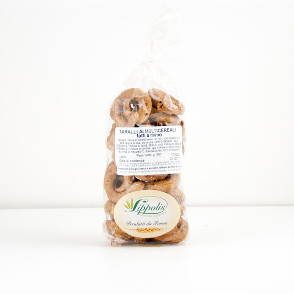 I taralli ai cereali vengono fatti a mano e lavorati seguendo la tipica ricetta della tradizione pugliese. Croccanti e friabili, accompagnano diversi tipi di aperitivi e gustosi break durante la giornata.